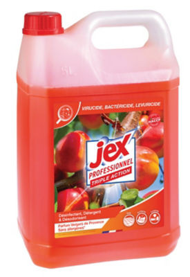 Idéal pour nettoyer et parfumer toutes vos surfaces avec un désinfectant efficace !Triple Action, le nettoyant JEX Professionnel Express nettoie, parfume et désinfecte vos sols et surfaces en un seul geste.