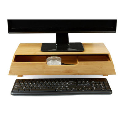 Support écranOrganiseur de bureauOptimise l'espaceRéduit les tensions dans le cou et les épaules ainsi que la fatigue oculaireAngle de vue confortableUn tiroir avec trois compartimentsMatériau : 100% Bambou naturelEcologique et recyclableCertification : FSCDimensions : L.