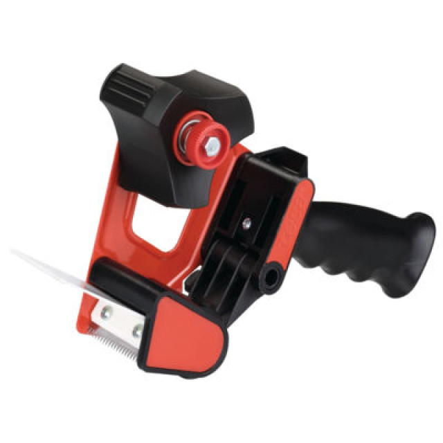 Scellez les cartons d'expédition et autres paquets plus rapidement et plus efficacementCadre en métal robustePoignée pistolet ergonomiqueContrôle de tension facilement ajustableBord coupant avec lame remplaçableRouleau en caoutchouc et languette d'appui souple pour plus de confort d'utilisationLargeur de ruban maximum : 50 mmLongueur de ruban maximum : 60 mDimensions du dévidoir : 255 x 155 x 70 mmPoids : 453 gCouleur : Noir et rouge