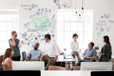 La feuille autocollante de tableau blanc en rouleau s'adapte facilement et permet d'obtenir des murs inscriptibles de forme arrondie ou rectiligne.