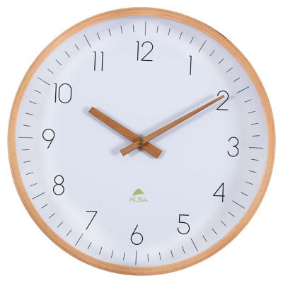 Horloge murale à quartz 2 aiguilles en bois de hêtre : Heure, minute Mouvement silencieux à quartz Visibilité de l’heure jusqu'à 25 m Cadran en ABS Diamètre : 30 cm Lentille en verre Epaisseur : 4 cm Poids : 650 g Garantie : 3 ans Coloris : Blanc Fonctionne avec une pile LR6 / AA non fournie