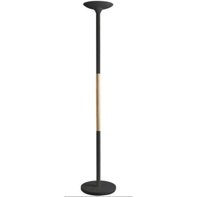Lampadaire fixe à Leds intégrées, ne peuvent être changéesVariateur tactile sur le corpsConsommation : 40 WEclairage : 4000 lumensClasse énergétique : A+Durée de vie des leds : 40 000 heuresMatériaux : Acier, peinture époxy / BoisSocle de diamètre 34 cmHauteur : 180 cmPoids : 8,12 kgColoris : Noir / Bois hêtreCertification : FSCGarantie : 2 ans