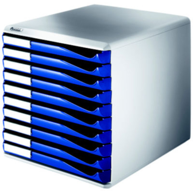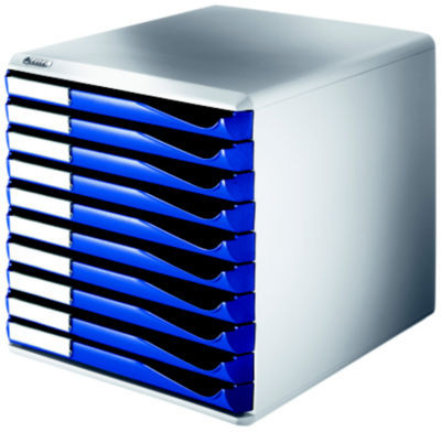 S'accorde parfaitement aux autres accessoires de bureau Leitz10 tiroirs coulissant aisément avec butées d'arrêt pour éviter que le tiroir tombeSystème unique de tiroirs qui se maintiennent en position fermée, 1 pression et le tiroir reste ferméFourni avec porte-étiquette "clipsable" étiquette pour une recherche facile des documentsPatins antidérapant, possibilité d'en superposer 3 pour un gain de place