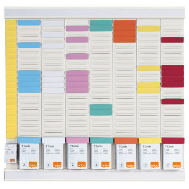 Ce tableau est doté de 8 colonnes (7 jours + 1 index) avec 24 fentes dans chacune qui peuvent toutes accueillir des fiches personnalisables T2 (T1 pour l'index).