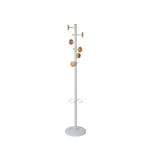 Elle est constituée d'un fût en métal de 175 cm de hauteur muni de 6 patères, de 3 embouts en bois pour les accessoires, assurant le respect de vos vêtements et d'un porte-parapluies avec un égouttoir sur le socle.