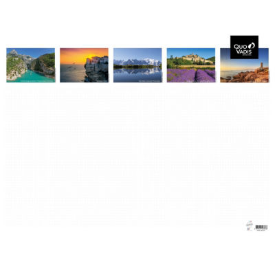 Sous-mains toujours utile sur votre bureau !Pratique à poser sur le bureau, il permet de prendre facilement des notes à tous moments, ce sous-main non millésimé de la marque Quo Vadis se compose de 25 feuillets détachables blancs, comportant quelques illustrations de paysages en coins.