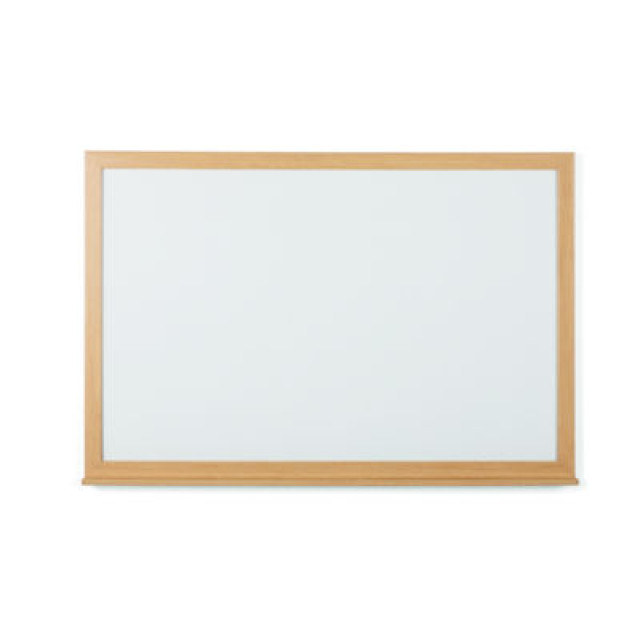 Tableau blanc idéal pour écrire au feutre effaçable à secConception écologique : recyclable à 98%Surface : acier laqué magnétique blancheAuget porte-marqueurs sur toute la longeurAdapté pour le bureau ou a maisonFixation murale fournieCadre : panneau MDF 22 mm coloris Chêne Fixation murale fournieDimensions : 60 x 45 cmGarantie : 2 ans