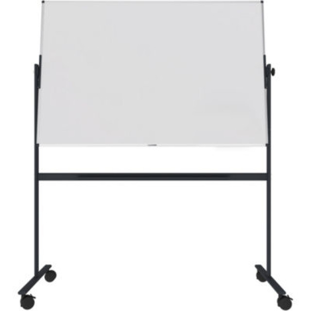 Il possède une double surface effaçable à sec en acier laqué et il est monté sur un piètement robuste et mobile avec fonction de pivot de 360° .