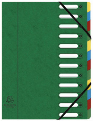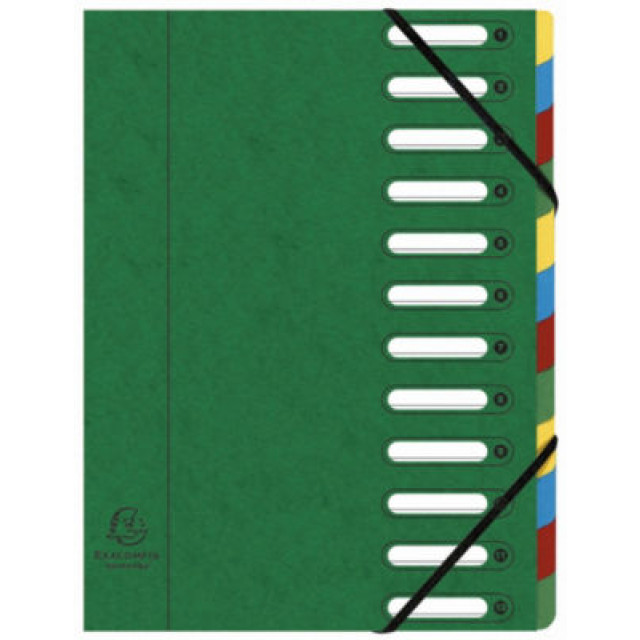 Trieur de documents à fenêtres avec élastiques12 compartimentsDimensions : 24,5 x 32 cmVéritable carte lustréeEpaisseur matière : 5,5/10eGrammage couverture et dos : 425 g/m²Grammage trieurs intérieurs : 225 g/m²Certifié FSCFabriqué en FranceCouleur : Vert